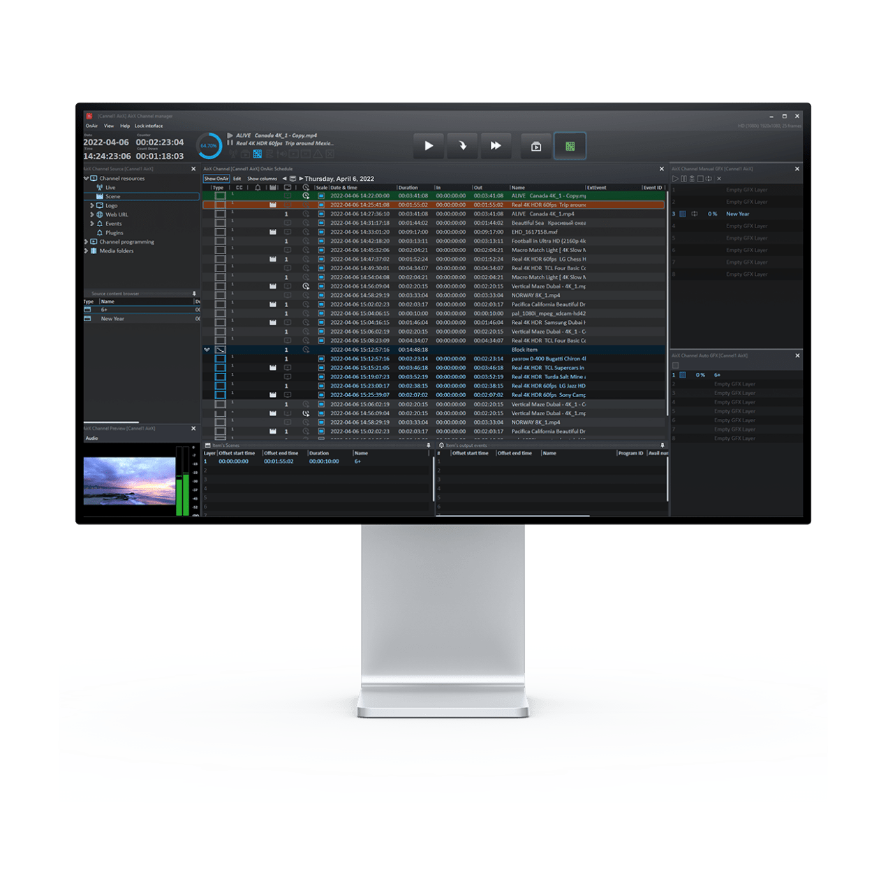As a leading provider of broadcast playout and monitoring solutions, we are eager to showcase the latest features and improvements we have incorporated into our StratoView and AirX products. Our cutting-edge technology can help you manage and optimize your network across diverse locations and platforms, providing you with advanced graphics, sound management, licensing, and playlist management capabilities.
